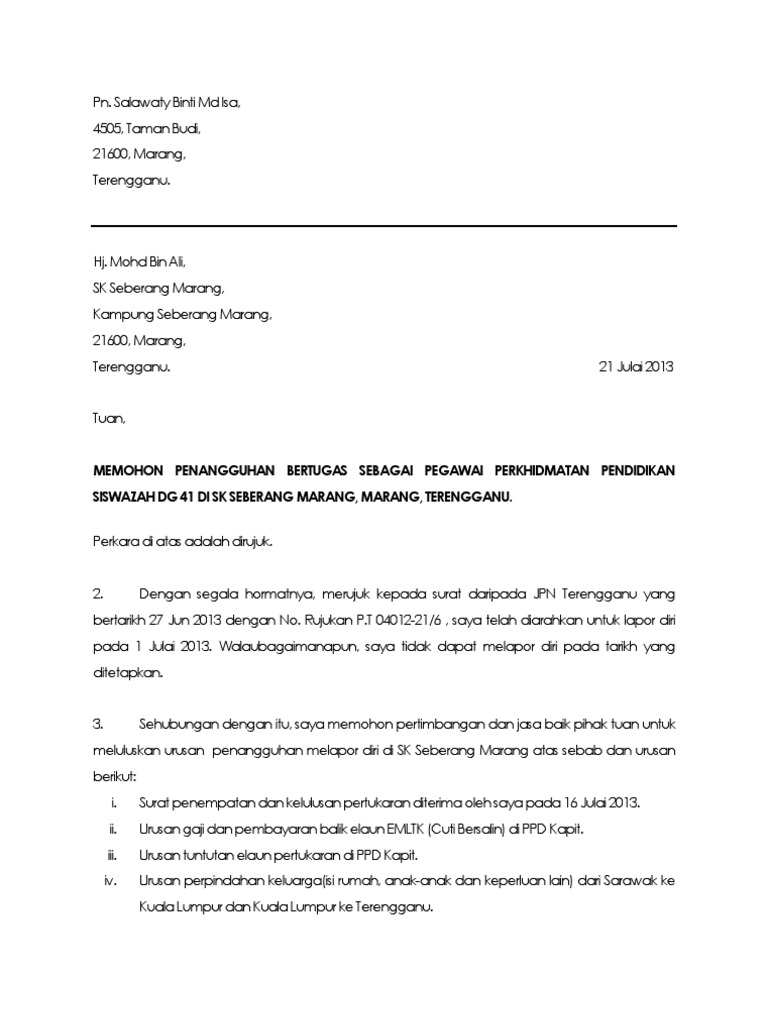 Contoh Surat Penangguhan Lapor Diri Pdf